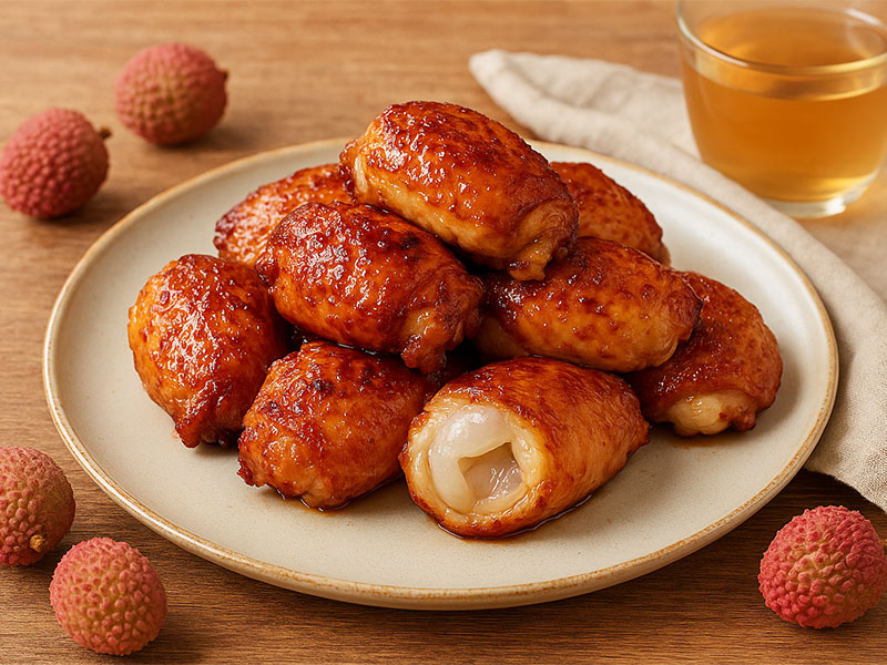 加熱清水至100°C,然後均勻淋於雞腿上川燙表面。
