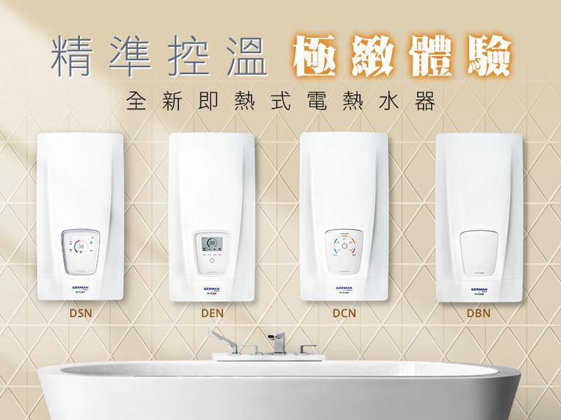 德國寶數十年來一直秉持為顧客提供高質、創新產品的宗旨,下列皇牌即熱式電熱水器系列引進世界級的頂尖快速製熱技術,采用全電子智能控制自動恆溫,實現最節能的理想製熱效果。全機經革命性優化升級後,更榮獲「德國紅點設計大獎」,盡力為您提供智能沐浴新體驗。