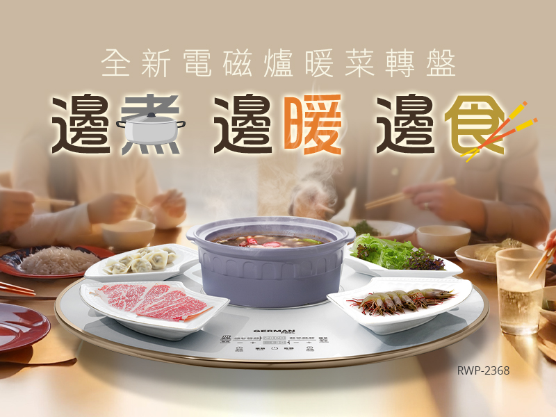 特別為您推薦全新電磁爐暖菜轉盤 RWP-2368 ,專為一家人溫馨聚餐及圍爐派對而設,全港首創將電磁爐、暖菜板及轉盤3合1,無論五餸一湯家常滋味,還是冬日圍爐暖笠笠打邊爐、歎盆菜宴或羊腩煲,每口都暖入心,讓您盡情享受與家人的窩心時刻。