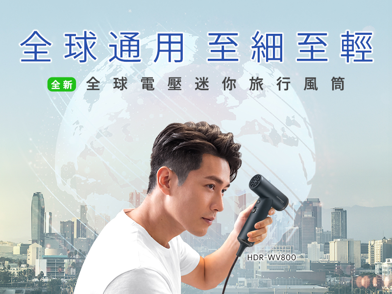 特別為您推薦全新全球電壓迷你旅行風筒(HDR-WV800),專為經常出差、公幹及旅遊的您而設!支援100-240V~全球電壓,無論飛到任何國家都可即插即用,掌心迷你尺寸、重量僅約230g*,放入行李或手袋都毫不佔位,真正旅行無負擔;迷你機身而內置110,000轉高速摩打,輸出澎湃風力,極速乾髮之餘更易塑造理想造型,配合8種風速及熱力組合及負離子功能,輕鬆打造媲美專業髮廊效果!