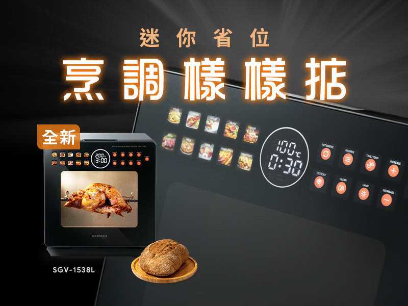 SGV-1538L 迷你蒸烤焗爐系列的設計理念,超迷你機身深度只有約32厘米極致慳位,機仔細細內藏 15L容量,更集蒸烤焗、氣炸、燉湯、風乾等功能於一身,真正十項全能,一機取代多種煮食電器,助您大大簡化廚房配置,港式小廚房或開放式廚房必備神器,幫你慳位又慳錢!無論日常家常菜、假日小聚或一次過準備多款美食都能靈活應對,令小廚房發揮無窮可能!