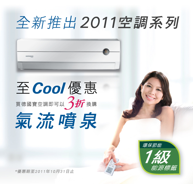 德國寶現正推出空調「至COOL」優惠,為配合大規模推廣,德國寶現於吉之島分店及蘇寧鐳射分店等多個地點舉行「2011 空調展」,款式齊備,讓你精選心水空調兼享超級優惠﹗