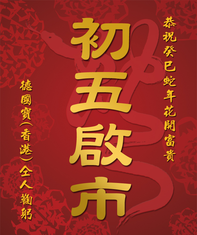 德國寶仝人恭祝新年進步 癸巳蛇年新春初五啟市