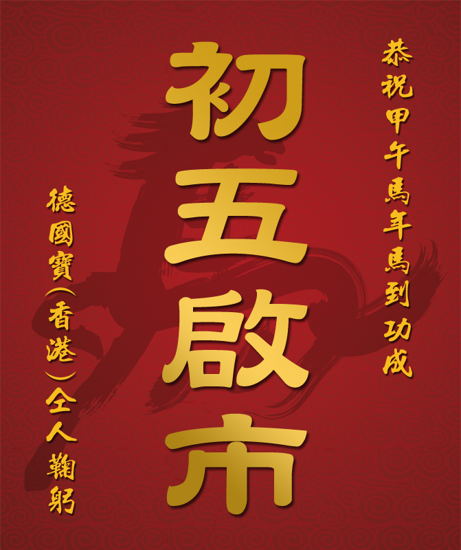 德國寶仝人恭祝新年進步 甲午馬年新春初五啟市