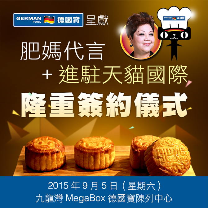 時尚電器及廚櫃品牌德國寶,現鐵定於2015年9月5日(星期六)於九龍灣MegaBox德國寶陳列中心舉行「肥媽代言+進駐天貓國際隆重簽約儀式」,活動內容極之豐富: