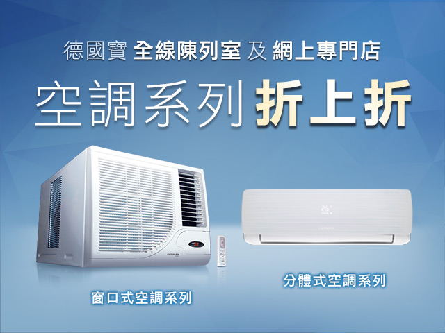 夏日炎炎,當然每家每戶都需要一部最先進實用的新款冷氣機!時尚電器及廚櫃品牌「德國寶」旗下分體式冷暖空調系列、分體式淨冷空調系列、窗口式遙控空調系列及窗口式空調系列,趁今個夏日推出折上折超級大優惠,在原有折扣上再打折,部分產品更以低至六折發售,以全城最優惠價錢為用家提供最經濟、最優質冷氣產品!