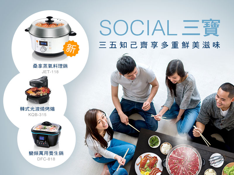 Social三寶:桑拿蒸氣料理鍋、韓燒爐、變頻鍋