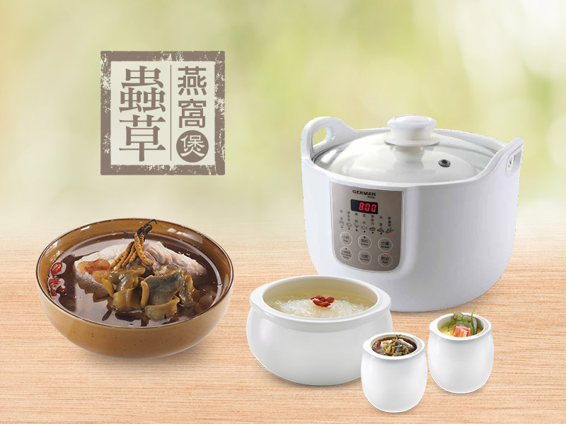 七大卓越烹調功能︰參·蟲草 燕窩 藥膳 慢燉肉 燉湯 蒸魚 廣東粥