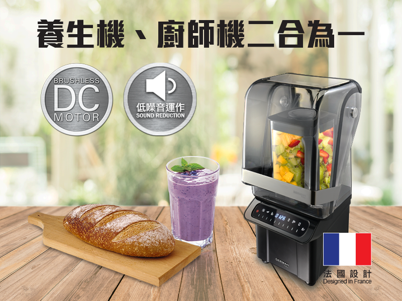 直流無刷摩打運轉過程中摩擦力極小,讓摩打接近零磨損,使用壽命可長達10年以上,同時能大幅降低使用時所產生的噪音,配合跟機附送的專有隔音罩,以達至超強的降噪能力,可將聲音減少至低於70分貝低噪音運作,製作食物時更加舒適,無後顧之憂!