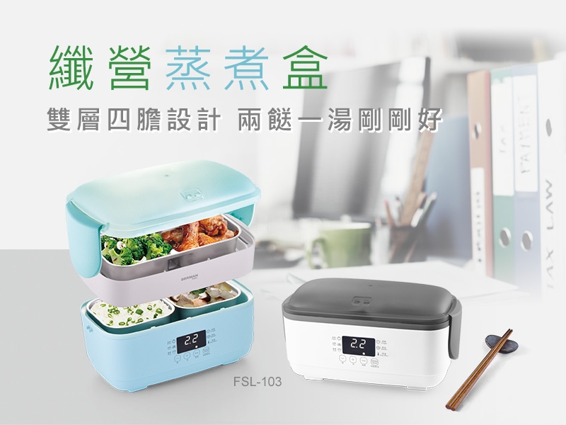 德國寶全新纖營蒸煮盒專為追求健康的繁忙上班族與瘦身男女而設,纖巧機身方便辦公室或家居收納,一盒代替多種煮食電器,蒸煮燉煲樣樣皆能;只需自選健康營養食材,預設烹調時間,到時到候即可品嚐新鮮熱騰的「煮」家菜;少油少鹽無味精,由自「煮」做起,食得健康,「纖」體又有「營」!