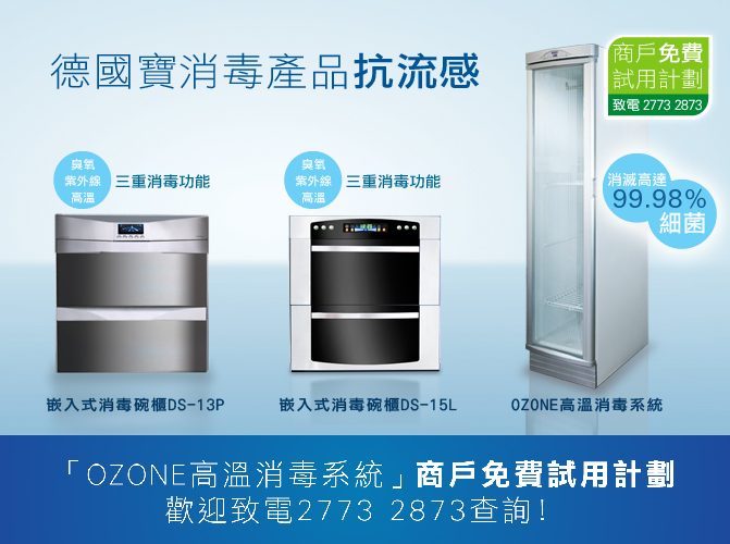 現推出「OZONE高溫消毒系統」抗流感商戶免費試用計劃,歡迎致電2773 2873查詢﹗