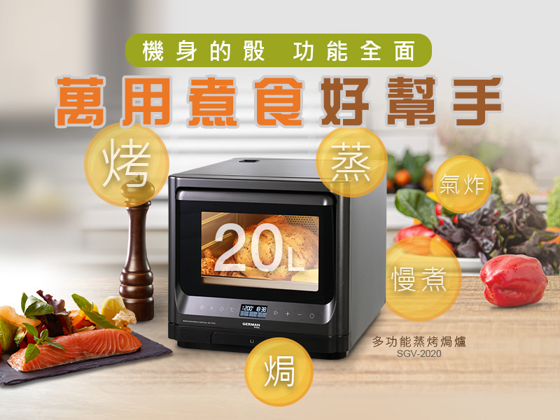 特別為你推薦一機完美取代蒸爐、焗爐、慢煮機、氣炸鍋等多種煮食電器的全新迷你多功能蒸烤焗爐(SGV-2020),將蒸氣、烤焗、氣炸、慢煮等多功能集於一身,而且超的骰機身闊度只有約36厘米,尤其適合廚房仔或開放式廚房使用!只需一部機的價錢就等於買到幾部電器,幫你慳錢又慳位,絕對是您的廚房救星!