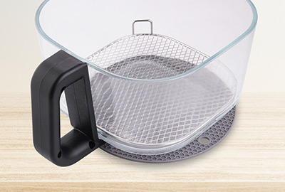 網架可隔開食材和滴落的油脂,烹調後將玻璃鍋放在隔熱墊上,貼心方便。