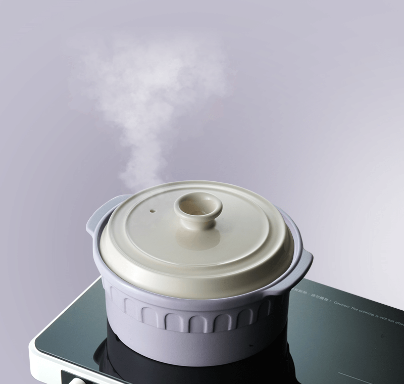 優質陶瓷材料承受極高溫度,熱量傳遞迅速而且均勻。煲身結實耐用,抗刮且耐腐蝕。用於電磁爐、明火、電陶爐、電熱爐、蒸爐和焗爐。支持多種烹調技術,可用來燉湯、燜肉以及製作煲仔飯。