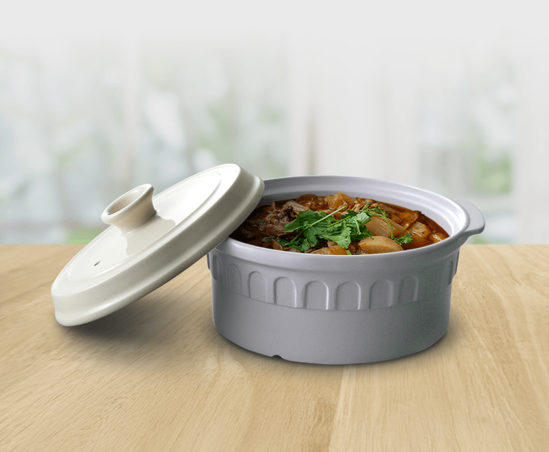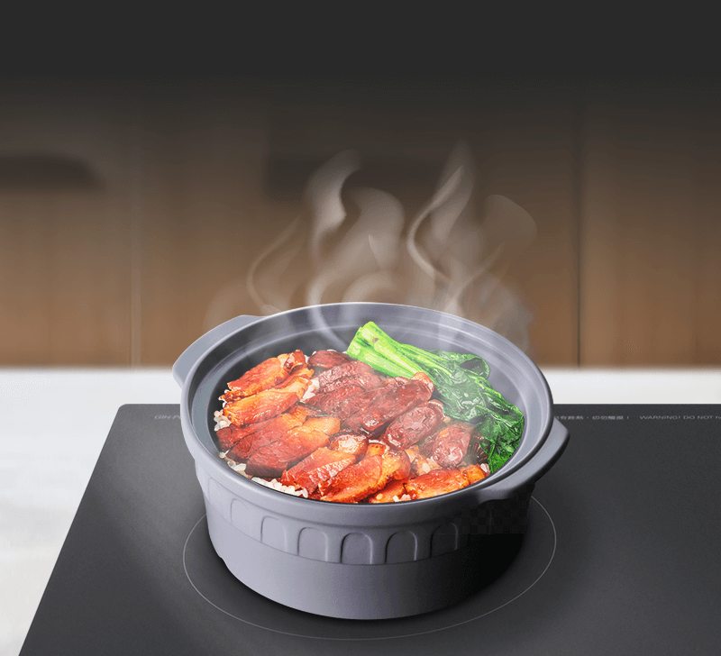 優質陶瓷材料承受極高溫度,熱量傳遞迅速而且均勻。煲身結實耐用,抗刮且耐腐蝕。用於電磁爐、明火、電陶爐、電熱爐、蒸爐和焗爐。支持多種烹調技術,可用來燉湯、燜肉以及製作煲仔飯。