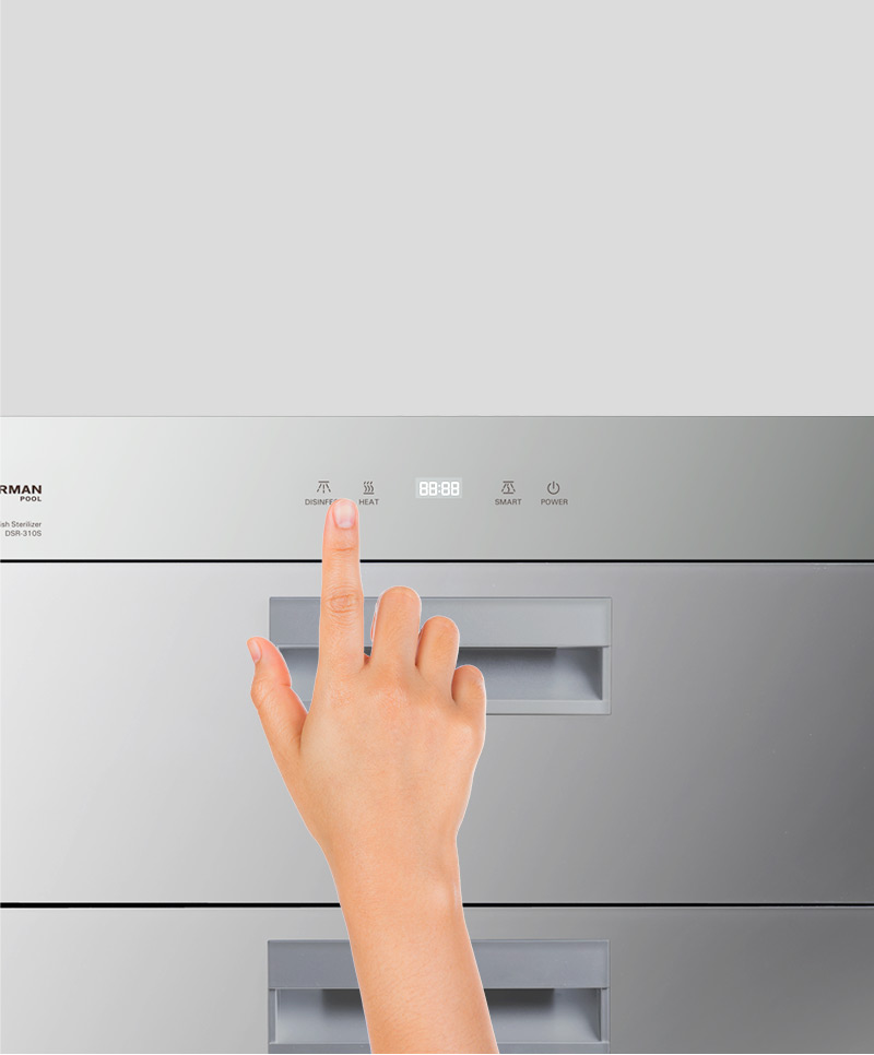 了解更多UVC + Ozone消毒碗櫃透過253.7nm波長的強勁UVC紫外線照射,破壞餐具上微生物的DNA結構,有效殺滅99.99%大腸杆菌等常見細菌。