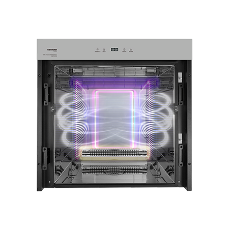 UVC + Ozone消毒碗櫃的臭氧產生器每小時釋放約40毫克臭氧,無孔不入,能短時間內將細胞體直接氧化,無死角殺菌,並具除臭、除異味的作用。