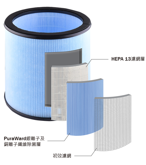 為三合一空氣淨化風扇暖風機EFB-P20H而設的專用濾芯,HEPA 13濾網及PuraWard銀離子及銅離子纖維除菌層全方位捕捉空氣中0.3µm (PM 2.5)的病毒、細菌、致敏原甚至氣溶膠*,活性碳同時吸附甲醛、廢氣、煙霧及異味,快速高效淨化空氣,保護您和家人健康。