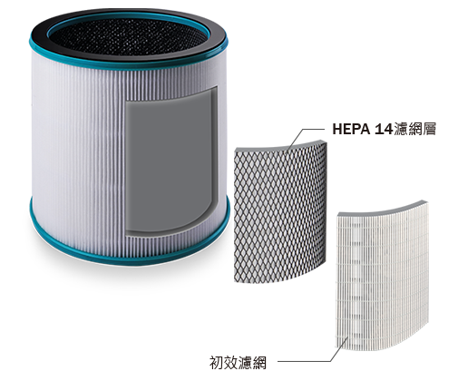 配備HEPA 14高效濾網,特別採用雙層設計,由初效濾網及HEPA濾網層所組成,能捕捉PM2.5懸浮微粒,並高效過濾99.9%*空氣中的污染物,將室內有害物質一網打盡。