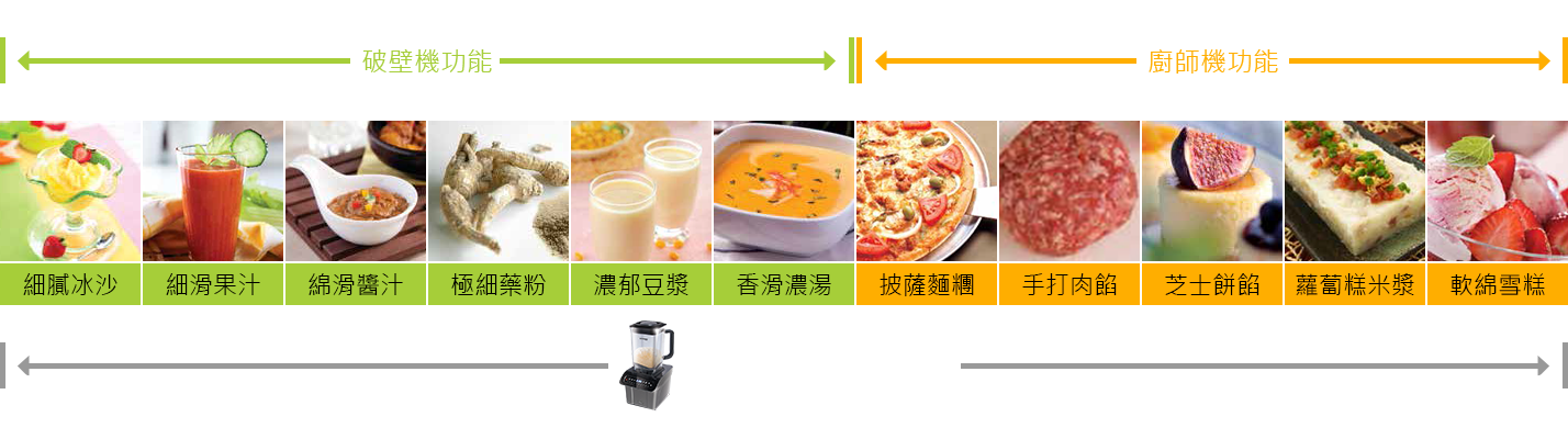 DC無刷摩打可低速運作,配合超強扭力可處理一般料理機無法做到的搓揉程序,應付各種烹調需要。