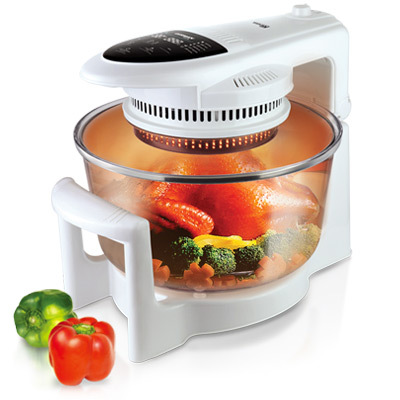 德國寶全能光波爐獲 《新假期週刊》 特別推介 , 並由記者親身試用 , 示範無油空氣炸雞的製作法。