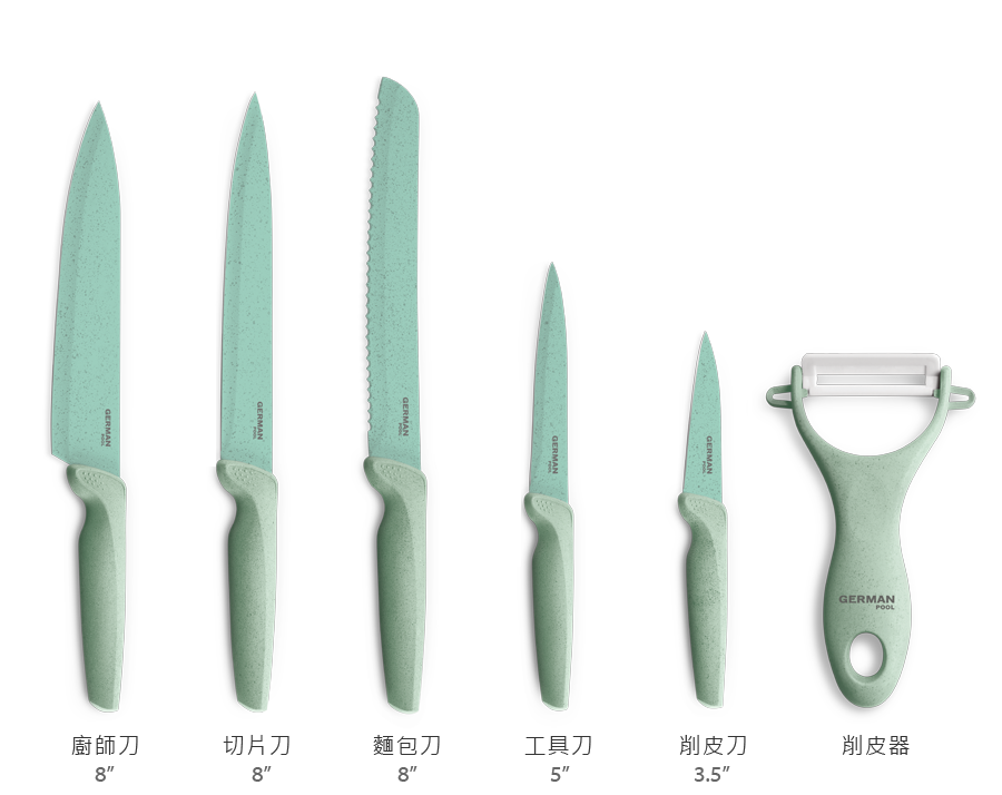 小麥纖維純淨天然,刀柄清新素雅,不藏味,不發霉,耐用環保。
