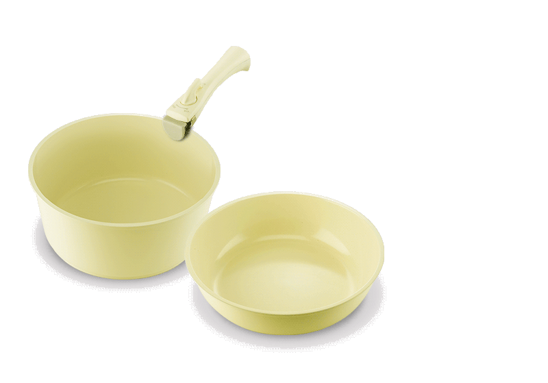 韓國可拆式手柄陶瓷易潔鑊煲套裝,配備一按即裝/拆的手柄,存放時拆除手柄可更慳位方便。