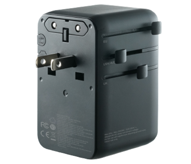 (1) 旅行充電插座不支援變壓功能,電器需配合當地電壓使用