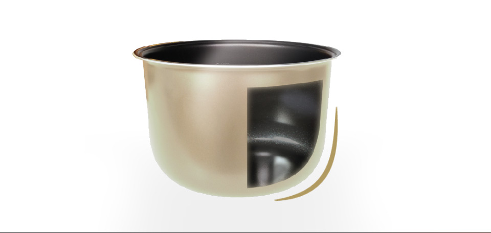 讓米粒受熱更均勻,使米粒更香更飽滿。弧形外形有助熱力均勻對流,善用每分熱能,節能環保,並保持長時間高溫烹調,煮出美味。