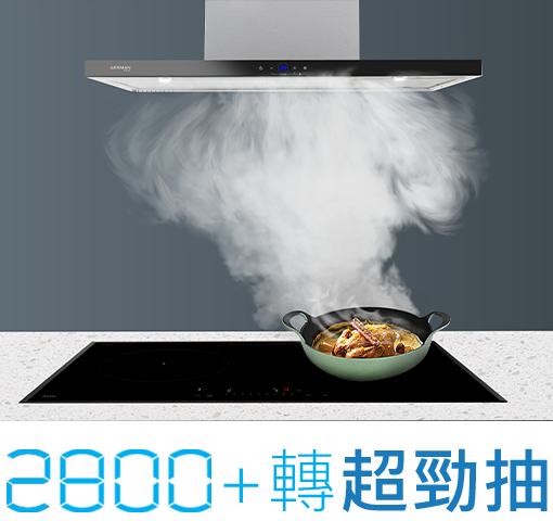 超強抽力瞬間抽走油煙,無論爆炒或油炸,廚房仍然保持清新
