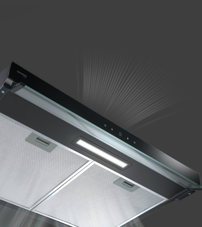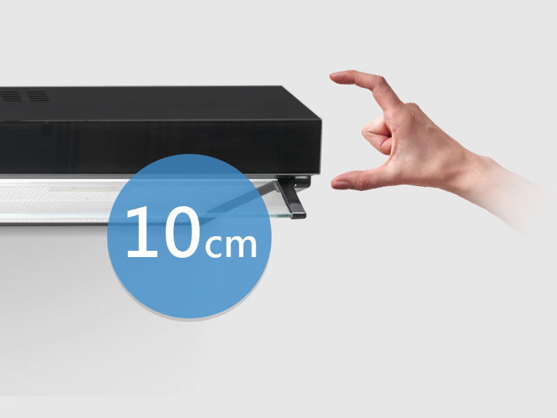 抽油煙機以機械臂超精密鐳射技術進行焊接及組裝,表面光滑,堅固耐用,且易於清潔。而機身厚度僅約10cm,比一般市面上的抽油煙機更纖薄慳位,助您用盡廚房每吋空間。