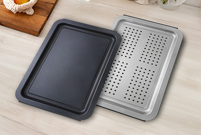 特殊複合物料製造的不黏底蒸烤盤,可安全用於微蒸或微烤模式。