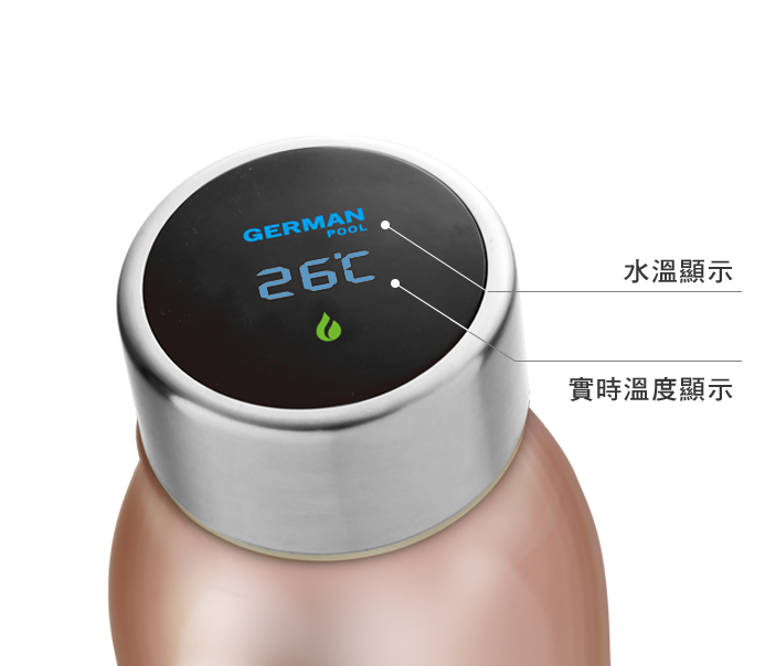對數字沒有概念?只需輕觸杯蓋電子屏幕,German Pool 標誌便會按水溫亮起不同顏色,冷暖熱一目了然。