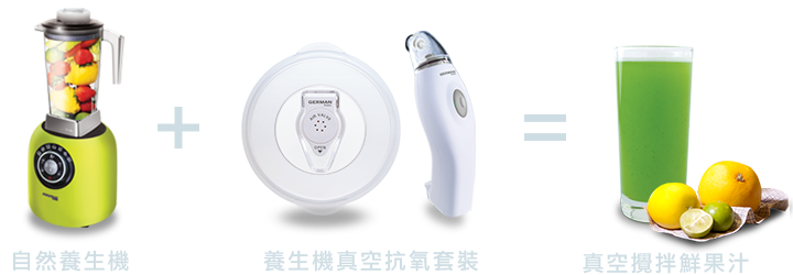 養生機真空抗氧套裝擴充自然養生機功能,實現真空攪拌,有效抗氧化,鎖住營養不流失。
