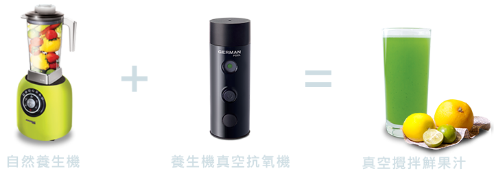 貼心配備真空抗氧機、果汁杯轉接頭及真空袋轉接頭,配合自然養生機及真空保鮮袋,在家就可立即體驗到專業的真空抗氧料理。
