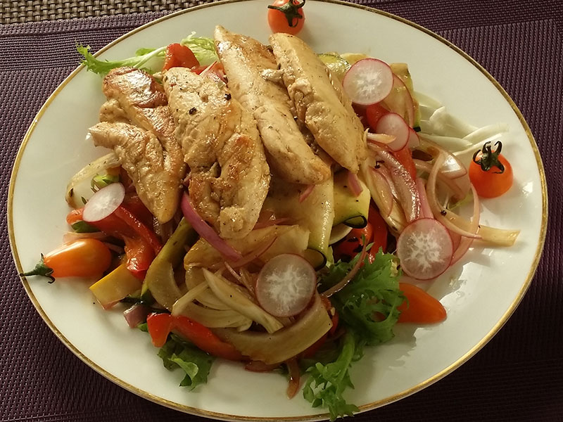 > 烧鸡胸甜椒茴香沙拉