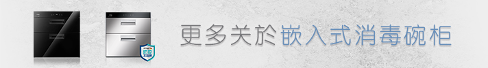 嵌入式消毒碗柜的机身高度及阔度为595毫米标準嵌入式电器尺寸,升级厨房时,可简单直接一换一升级成新消毒碗柜,避免大工程改动厨柜的麻烦,同时省却装修的额外成本和时间,与厨柜完美融为一体。而消毒碗柜特别采用时尚型格的黑色面板,无论安装於家用厨房、餐厅、会所及酒店,完美展现时尚风格。
