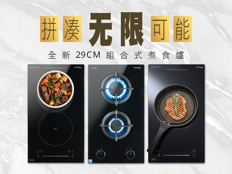 如果想同时享受气体煮食炉和电磁炉的好处,特别为您推荐德国宝全新 29cm 组合式煮食炉!特设单头、双头气体煮食炉及单头、双头电磁炉共 4 种款式,29 cm 纤窄 Domino 设计,悭位之馀,开孔尺寸与市面上大部份型号相容,方便一换一大升级,您更可自由组合配搭炉头,烹调从此不再受限,煮食更得心应手!