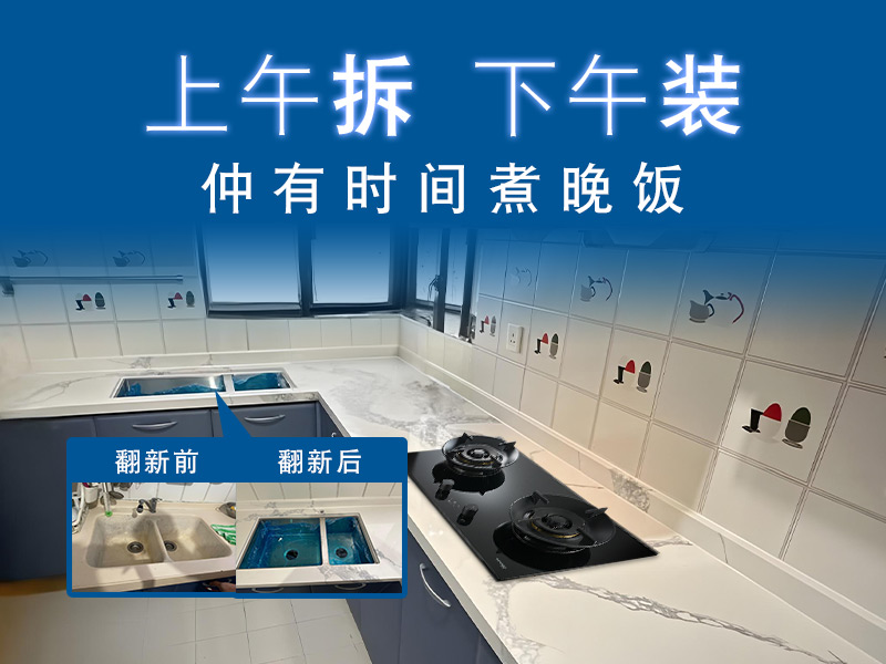 全城至快 : 早拆午装 1日搞掂 厨柜台面石翻新服务