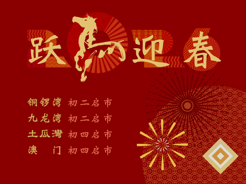 网上商店在新年假期期间正常营业,欢迎到网上商店浏览及购买产品,但于新年前送货的截单日期为 13/2 前,之后的订单会在新年假期后处理。