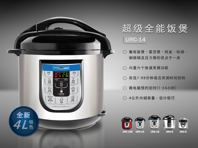 新登场:4公升银色超级全能饭煲URC-14