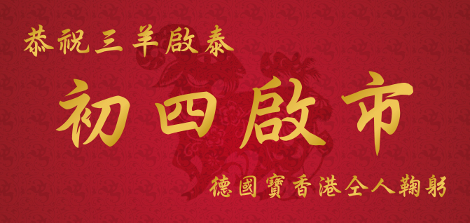 德国宝同人恭祝新年进步 乙未羊年新春初四启市