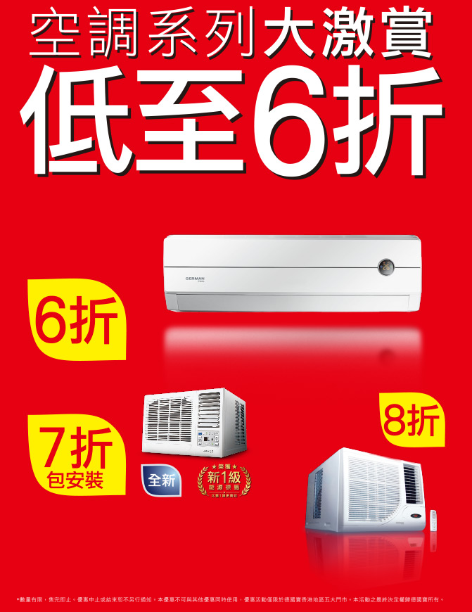 德国宝新张疯狂大特价- 特选冷气低至六折发售