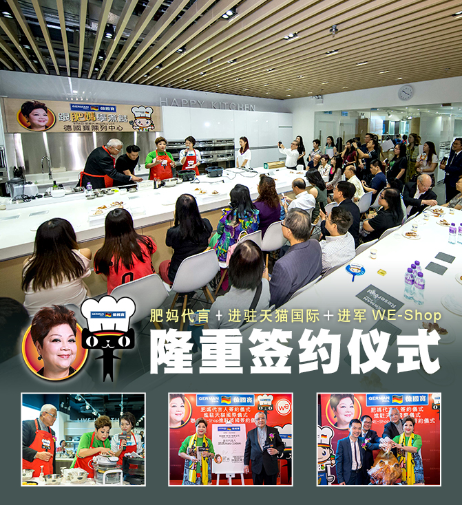 时尚电器及厨柜品牌德国宝,上星期六(9月5日)于九龙湾MegaBox德国宝陈列中心举行「肥妈代言+进驻天猫国际+进军WE-Shop隆重签约仪式」,吸引不少嘉宾及传媒朋友到场,盛况空前。