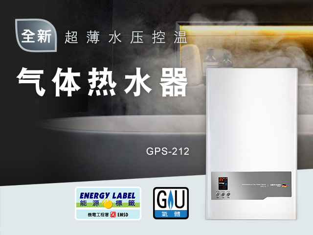全新GPS212超薄水压控温气体热水器,突破传统外挂式气体热水炉厚重的机身设计,其创新纤薄138mm机身,机身悭位又美观,特别为小巧的香港浴室度身订造。其出入水及入气口设计,更特别配合本地楼宇供水系统结构。荣获机电署颁发能源标签,省电环保。