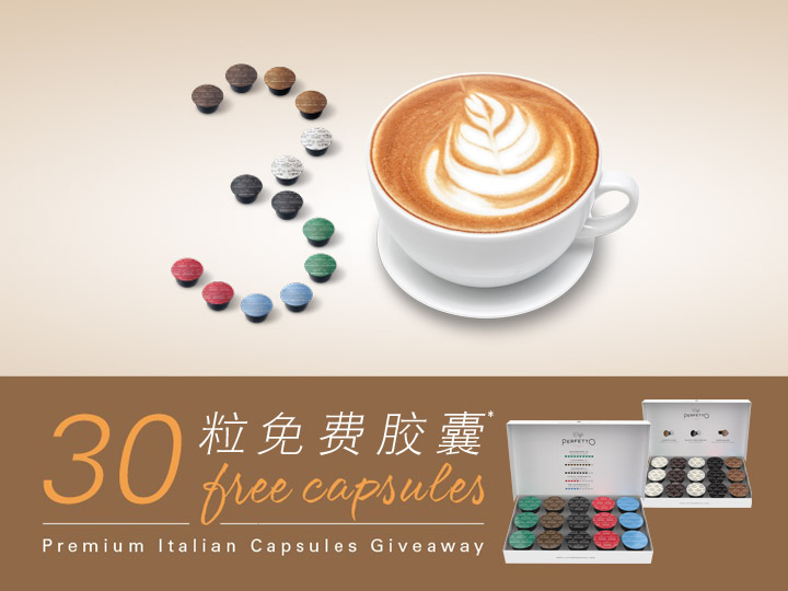 - ▶ 2017年8月17日起至9月16日凡于德国宝陈列室或网上专门店购买随芯咖啡机将立即获赠Caffè Perfetto 30粒装胶囊咖啡(与DOLCE-GUSTO-type 同款)乙套。