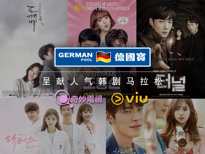 韩剧是近年港人最爱的娱乐之一,最近德国宝便特别赞助本港两大免费电视平台ViuTV及奇妙电视的黄金时段,首播一连多套超级人气韩剧,为你提供茶余饭后的最佳节目!