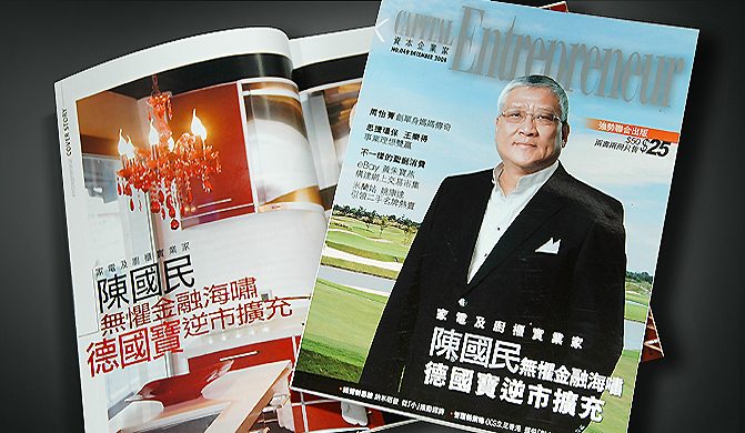 《资本企业家 (Entrepreneur) 》杂志一直以勇于开创事业,为梦想而奋斗的人物作为内容主轴,并于2008年12月号专访德国宝创办人陈国民博士,写为封面故事。当前的经济危机令不少本地公司面对经营困难,德国宝却凭着人缩我冲的扩展策略,并以大众化价格销售高质素家电的定位,成功逆市「发围」。