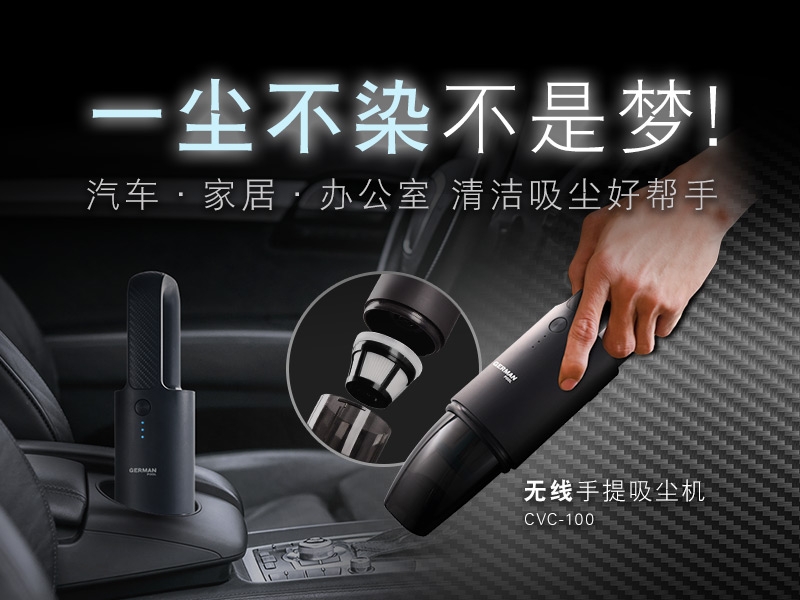德国宝特别为你推荐超型格时尚的全新无线手提吸尘机(CVC-100),迷你机身至轻巧悭位,采用充电设计,全程无线使用,让你可放在车厢任何储物空间,随手可得,随时吸尘;同时亦适用於家居、办公室清洁,让爱车车廂以及家居、办公室环境持久保持乾净卫生。