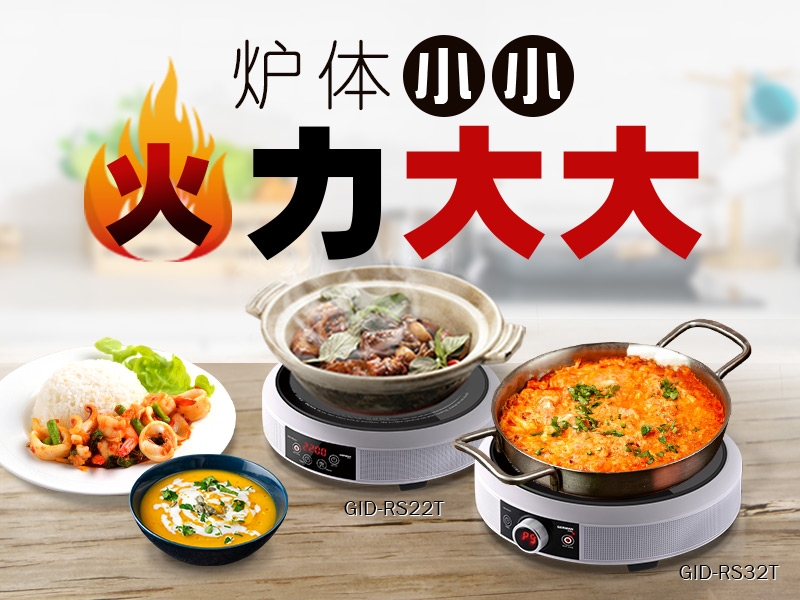 旋钮式(GID-RS32T): 轻巧机身配备旋钮式控制面板,简单易用,有效精準控制火力及烹调时间、功率及加热模式,同样配备特大LED显示屏清楚显示运作功率,烹调更方便。
